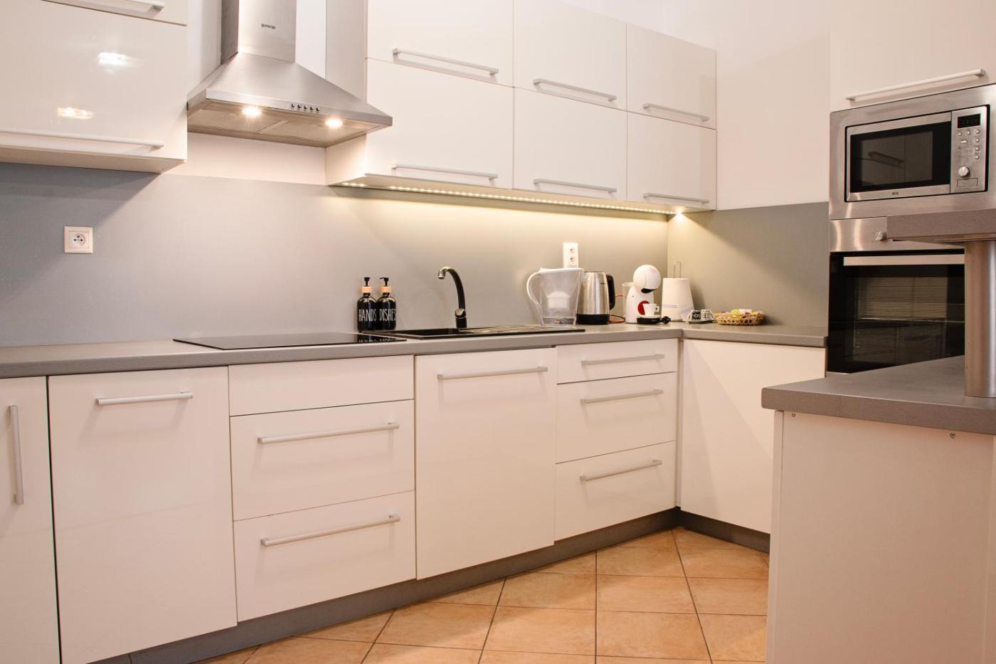 One-Bedroom Apartment. Featuring a private entrance, this apartment consists of 1 living room, 1 separate bedroom and 1 bathroom with a bath and a hairdryer. In the kitchen, guests will find a stovetop, a refrigerator, a dishwasher and kitchenware. The apartment provides a flat-screen TV with cable channels, a washing machine, a tea and coffee maker, a seating area as well as ancourtyard view. The unit offers 3 beds.