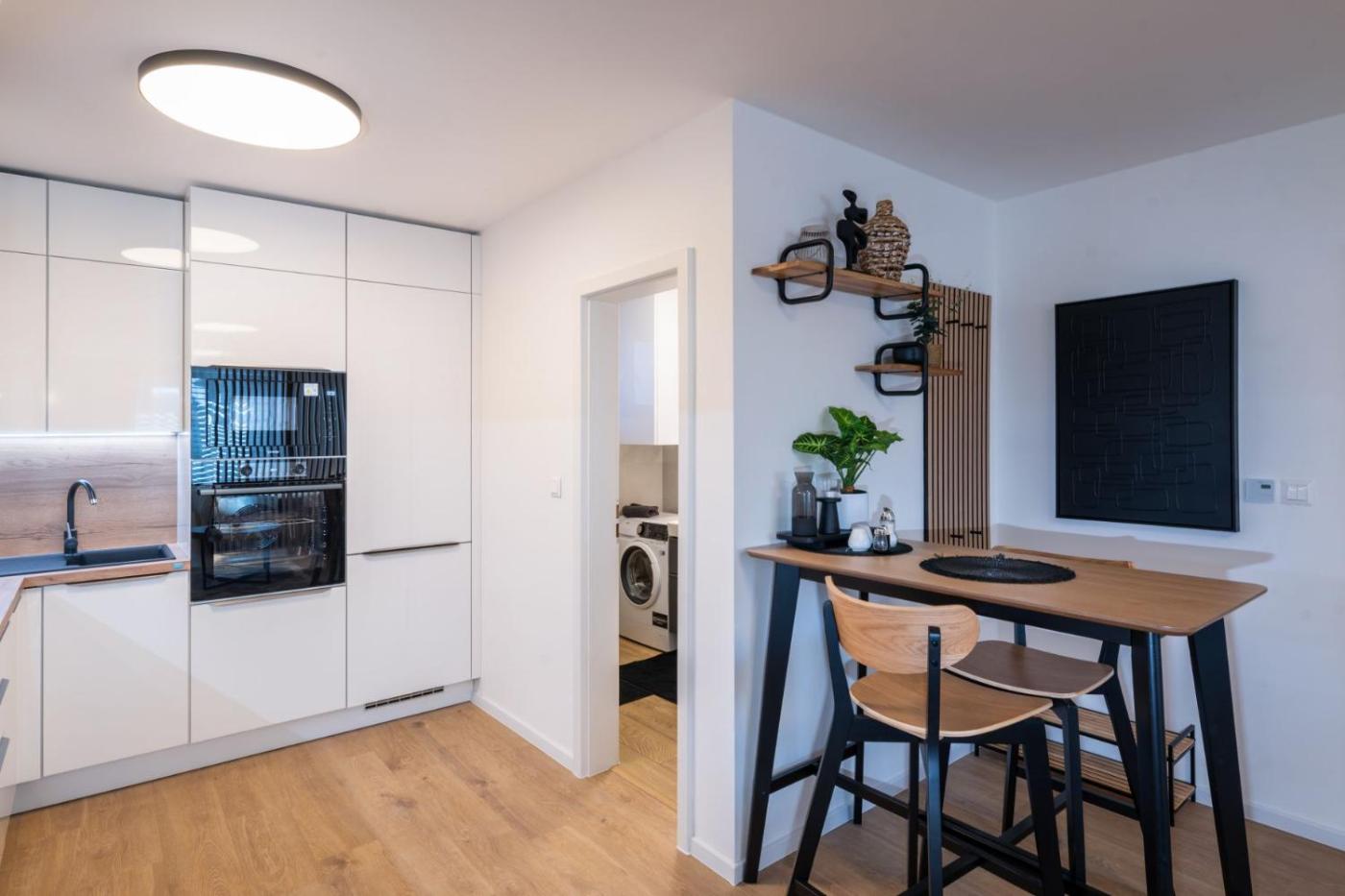 Superior One-Bedroom Apartment with Balcony. This apartment comes with 1 living room, 1 separate bedroom and 1 bathroom with a shower and free toiletries. Guests can make meals in the kitchen that features a stovetop, a refrigerator, a dishwasher and kitchenware. The air-conditioned apartment features a flat-screen TV with streaming services, a washing machine, soundproof walls, a tea and coffee maker as well as garden views. The unit has 2 beds. ;
