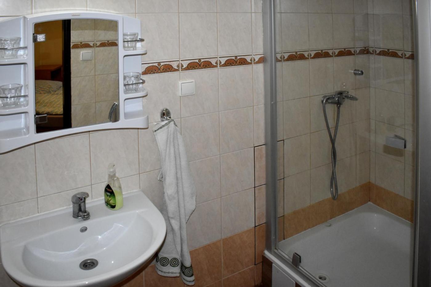 Triple Room with Bathroom. Offering free toiletries, this triple room includes a private bathroom with a shower. The triple room has parquet floors, a seating area with a flat-screen TV, a wardrobe and an electric kettle. The unit has 2 beds.