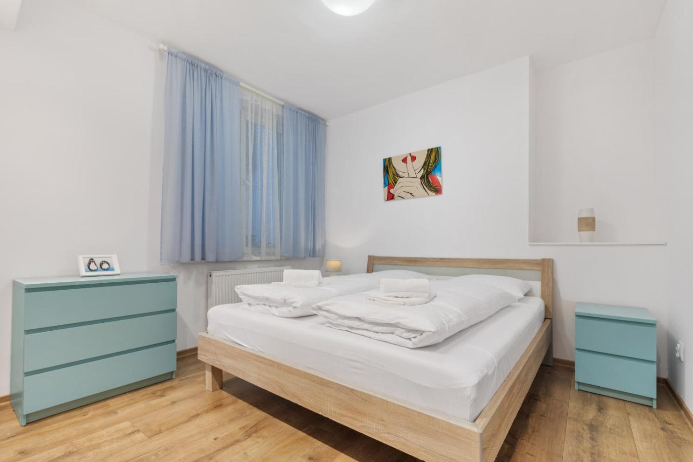 One-Bedroom Apartment. The apartment has 1 bedroom, 1 bathroom and a kitchen. The apartments kitchen is available for cooking and storing food. This apartment features a washing machine, heating, a flat-screen TV and a balcony. The unit has 2 beds.