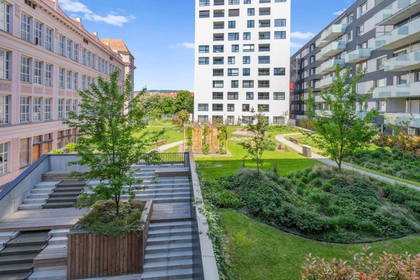 One-Bedroom Apartment. This apartment consists of 1 living room, 1 separate bedroom and 1 bathroom with a shower and free toiletries. In the well-fitted kitchen, guests will find a stovetop, a refrigerator, a dishwasher and kitchenware. The air-conditioned apartment provides a flat-screen TV with streaming services, a washing machine, soundproof walls, a tea and coffee maker as well as garden views. The unit offers 2 beds.