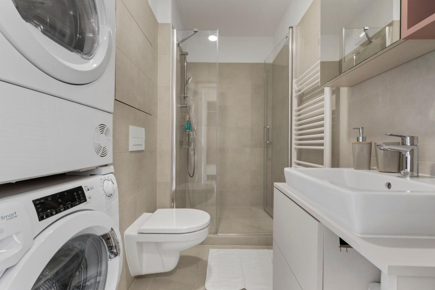 One-Bedroom Apartment. This apartment comes with 1 living room, 1 separate bedroom and 1 bathroom with a walk-in shower and free toiletries. Guests can make meals in the kitchen that features a stovetop, a refrigerator, a dishwasher and kitchenware. This air-conditioned apartment is comprised of a dining area, a flat-screen TV with streaming services a washing machine and a terrace. The unit has 2 beds.