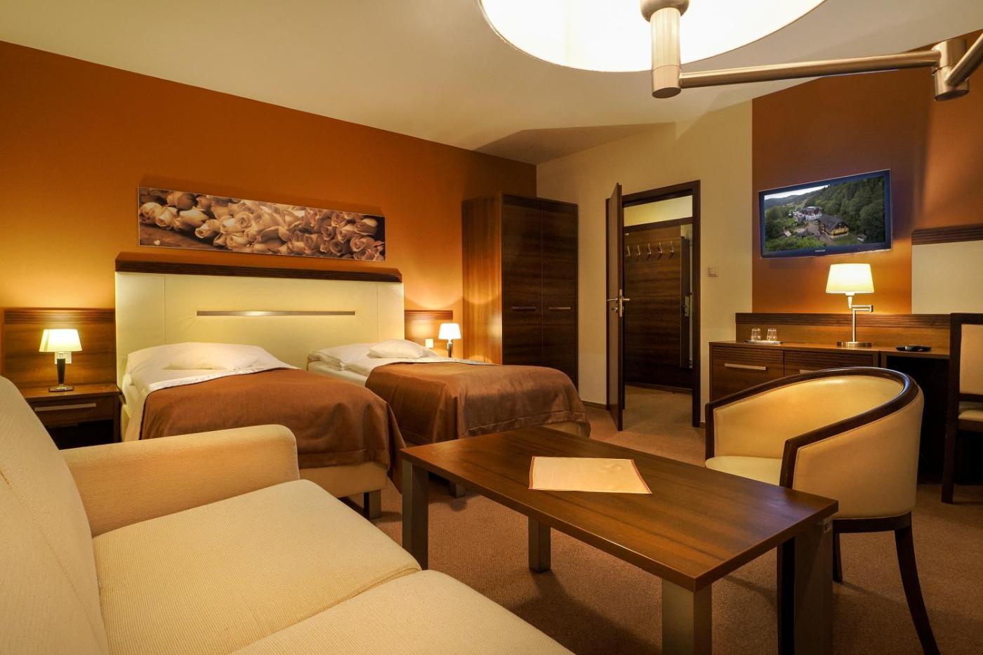 W pokoju znajdują się gniazdka koło łóżka dla wygody ładowania urządzeń.