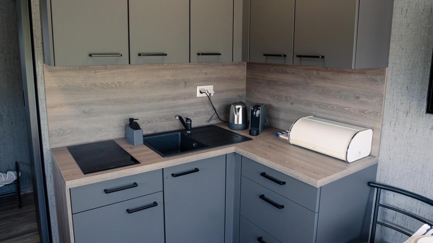 One-Bedroom Apartment. Boasting a private entrance, this air-conditioned apartment includes 1 living room, 1 separate bedroom and 1 bathroom with a shower and a hairdryer. In the fully equipped kitchenette, guests will find a stovetop, a refrigerator, kitchenware and a microwave. The unit has a tea and coffee maker, lake views, a terrace and winechampagne is offered for guests. The unit has 2 beds.
