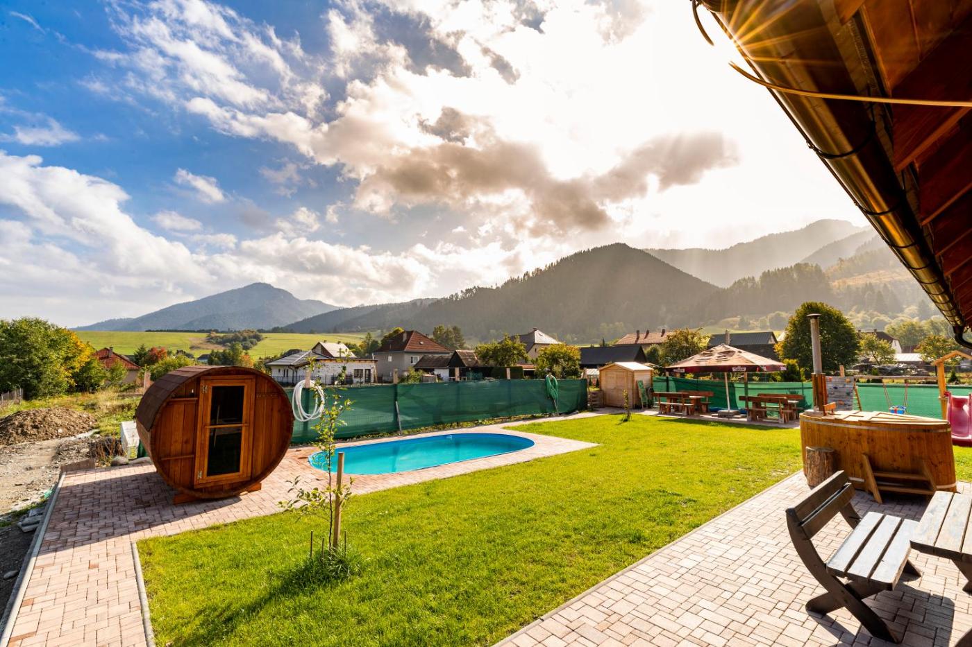 Boasting a sauna, Drevenice Liptov - ski & hiking apartments is situated in Lazisko. This apartment has a private pool, a garden and free private parking. Guests can make use of the childrens playground or the barbecue, or enjoy views of the mountain and pool.