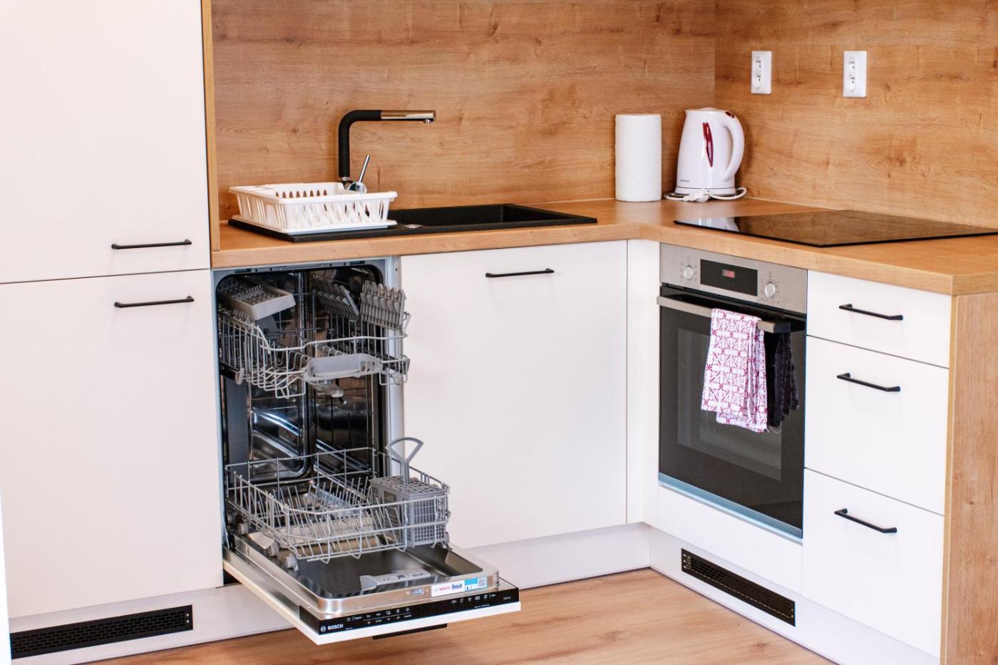 One-Bedroom Apartment. This apartment features 1 living room, 1 separate bedroom and 1 bathroom with a shower and free toiletries. Meals can be prepared in the well-fitted kitchen, which has a stovetop, a refrigerator, a dishwasher and kitchenware. Boasting a balcony with garden views, this apartment also features a washing machine and a flat-screen TV. The unit has 2 beds.