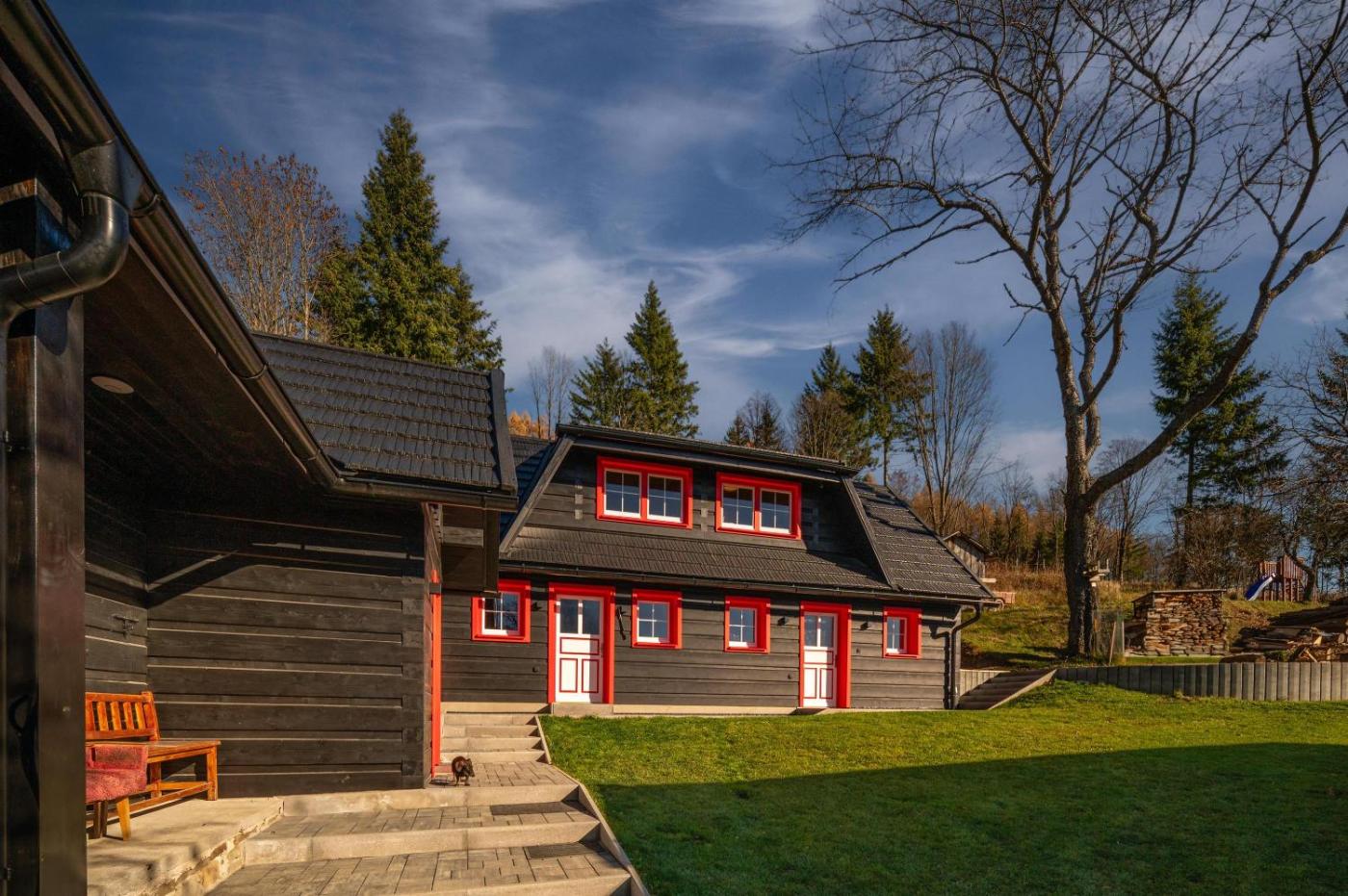 27 km from Strečno Castle, Chalet na vrchoch is a recently renovated propertyin Nesluša and offers air-conditioned rooms with free WiFi and private parking. The accommodation features a spa bath. Featuring family rooms, this property also provides guests with an outdoor fireplace.