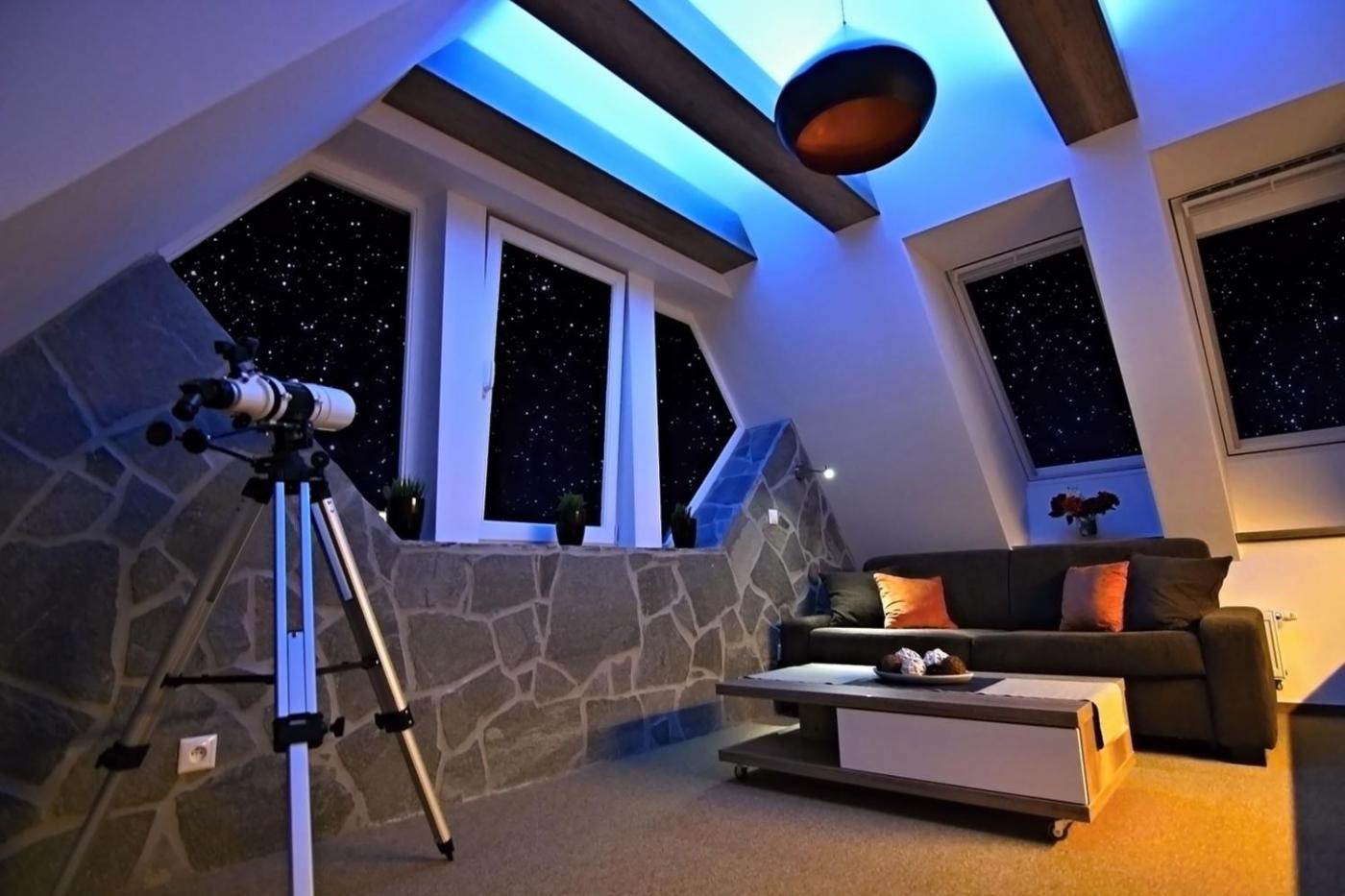 Deluxe Apartment with mountain view. This apartment features the opportunity to observe the stars with the binoculars, a well-fitted kitchenette, a TV, a dining table, a sofa and abed room with a double bed. The bathroom comes with a shower.