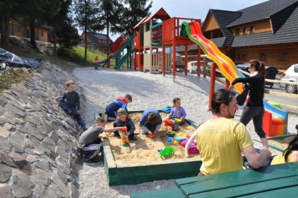 For guests with children, the holiday park features outdoor play equipment. Guests can also warm themselves near outdoor fireplace after a day of skiing.