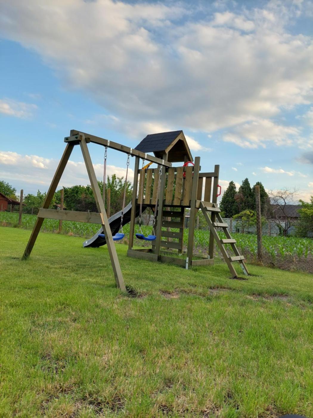 Outdoor play equipment is also available at the apartment, while guests can also relax in the garden.