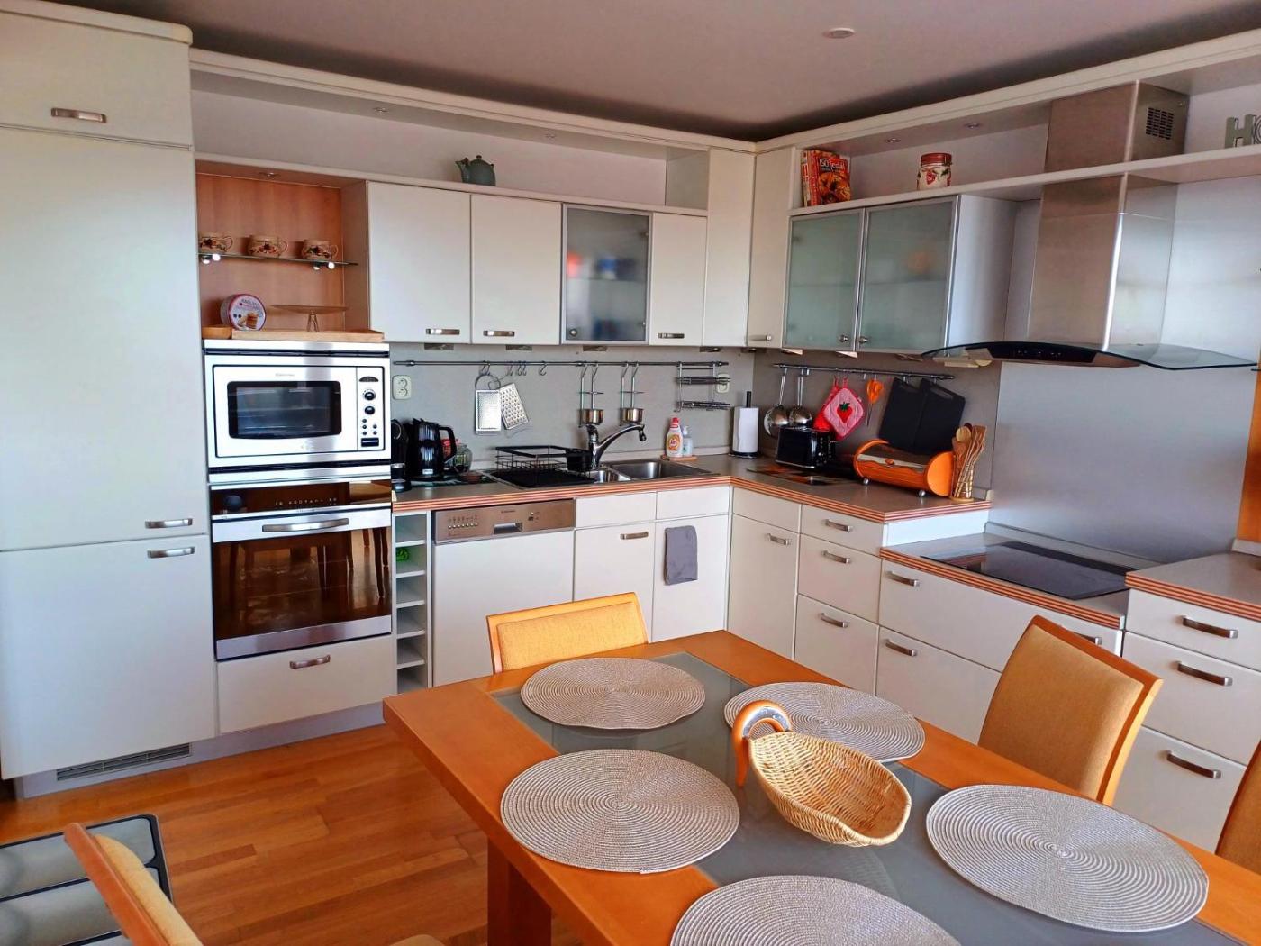 Two-Bedroom Apartment. This apartment features a fireplace. This spacious apartment features 2 bedrooms, a kitchen and 2 bathrooms with a bath and a shower. In the kitchen, guests will find a stovetop, a refrigerator, a dishwasher and kitchenware. Boasting a balcony with mountain views, this apartment also features a washing machine and a flat-screen TV with streaming services. The unit has 3 beds.